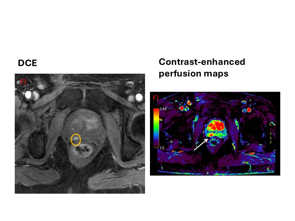 • Dynamic contrast-enhanced imaging (DCE) with gadolinium in many protocols: highlights tissue perfusion patterns. Cancerous tissue typically shows increased angiogenesis.There is also the concept of biparametric MRI (bpMRI) (without contrast) in selected protocols, as contrast enhancement plays a more limited role in PI-RADS categorization and is not always necessary when the core sequences are of excellent quality.